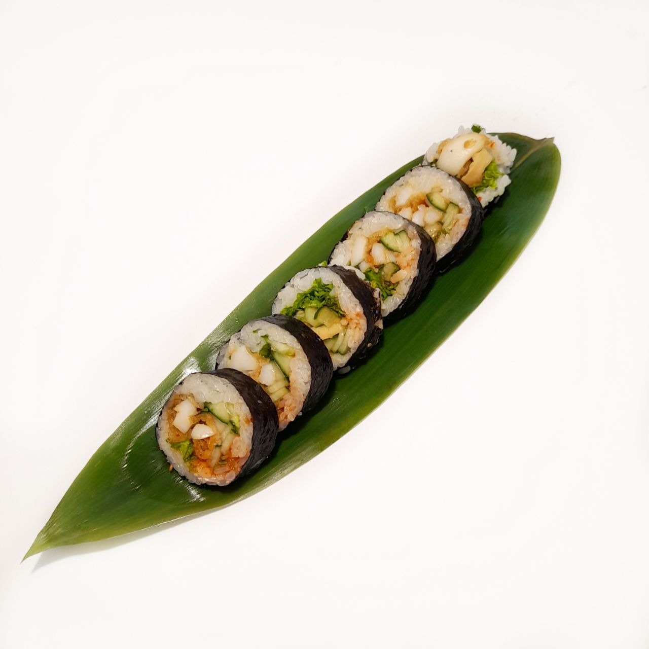 (Sałatka krabowa, ogórek, oshinko, masago, mozzarella, sos majo, por)