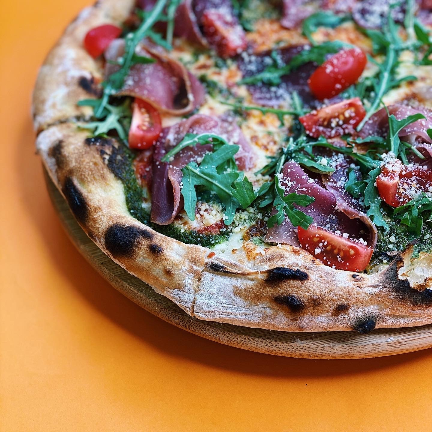 sos, mozzarella w zalewie, pomidor, sos pesto, bazylia, oregano -